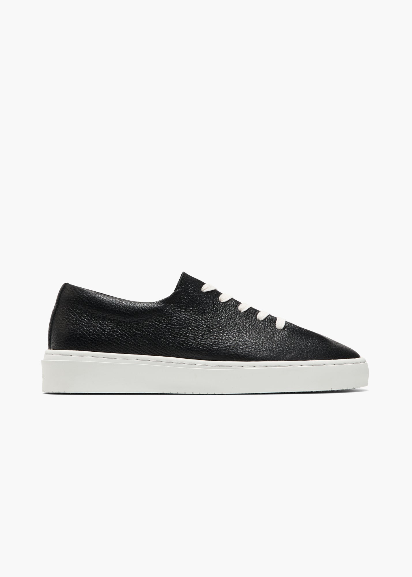 The Dani is a minimalist sneaker handcrafted from one piece, tongueless tumbled leather upper and sets on a rubber outsole and finished with debossed "HW" accents along the side.
